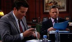 In Rick's old office, Carter entered and told Ridge that Caroline had messaged Carter to ask him to sit in on a divorce ratification meeting with Rick and Kris, Rick's attorney. Ridge relayed that Caroline was visiting her mothers in New York and had heard that the divorce would be final. Carter asked if she was okay, and Ridge said she was anxious to put Rick behind her.