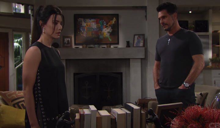 At the cliff house, Ridge was visiting and saying that he was glad Steffy had talked to her mother. Ridge looked forward to talking to Taylor, too, but Steffy didn't even know if her mother was still in town. He wondered if Taylor would really leave town without talking to him and asked if she was "pissed" at him. Steffy said Taylor wasn't, but Steffy was.