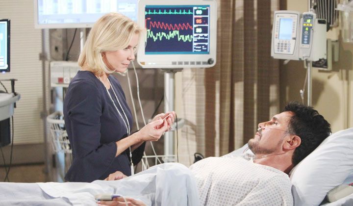 Dr. Chester approached to say that Bill was asking for Brooke. Ridge said that Brooke had heard the doctor; Bill was asking for her. Brooke strode back to Bill's room, and Ridge sighed.