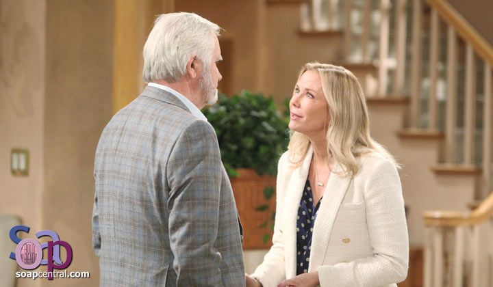 Eric asked if Brooke needed a hug or a punching bag. He offered to be those things for her. Brooke stated that Eric had been her and Ridge's biggest supporters. She asked Eric not to abandon them when they needed him the most. Eric stated that he wasn't going to divorce his wife, and sending Shauna to the desert wouldn't solve the problems.