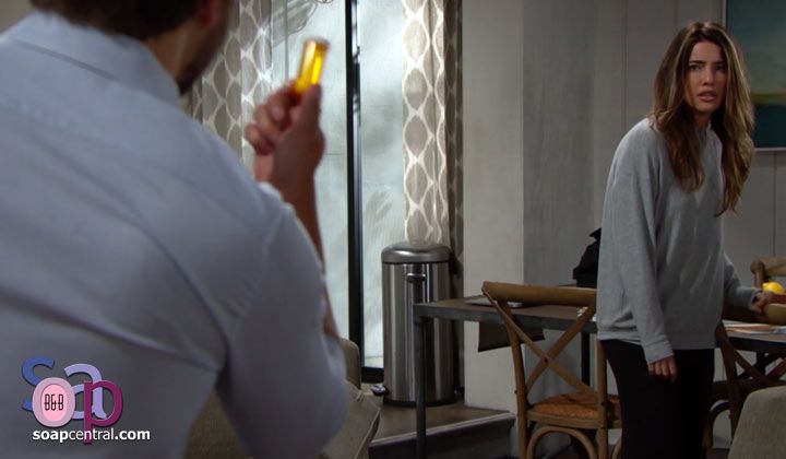 Ridge told Steffy that she'd been out of pills. Steffy affirmed it. He asked if the doctor had given her more. She denied that the doctor had. Liam said he'd thought that doctor had been the problem, but the doctor didn't even know about the pills. Ridge asked where Steffy had gotten the pills. "God only knows," Liam responded.