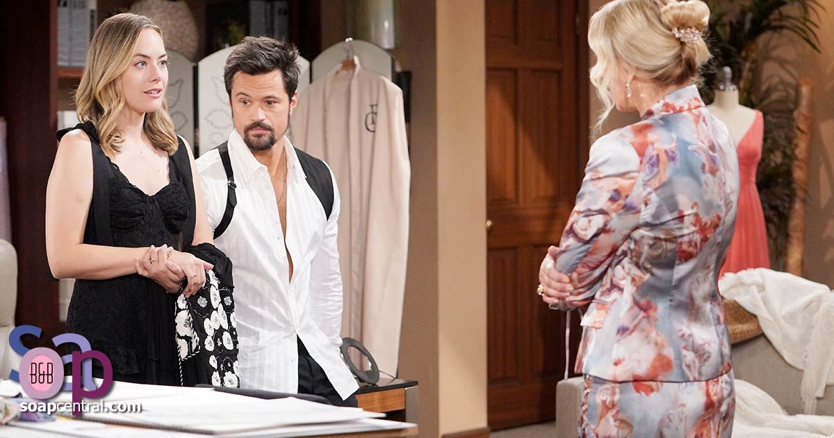Brooke said she was looking for Hope because they had work. Brooke hadn't expected to find Thomas and Hope doing whatever they were doing. Hope snickered, saying Ridge and Brooke had done it. Thomas and Hope exchanged smirks. Brooke yelled that it wasn't about her and Ridge. Saying she had a right to be concerned, Brooke asked where things stood with them.