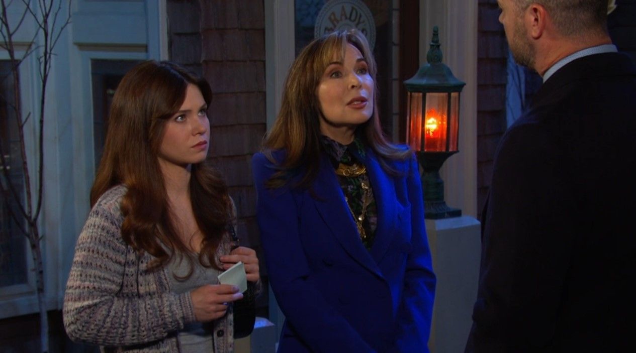 Kate (Lauren Koslow) intruded on Joy (AlexAnn Hopkins) and EJ's (Dan Feurriegel) meeting. \Image Source: Peacock