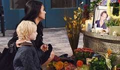 Melanie said she would look to her father's example for inspiration each time she faced a difficult situation in which doing the right thing was vitally important, even if it wasn't necessarily the easiest thing to do. J.J. vowed that he would never forget Daniel -- or all the things Daniel had done for him. As J.J. returned to his seat, all eyes turned to Nicole, who hadn't spoken yet. "Um... I, uh... I can't. I'm sorry. I don't... I don't have anything to say," Nicole tearfully muttered. Nodding, Maggie stood and told everyone to help themselves to the refreshments and stay for as long as desired.