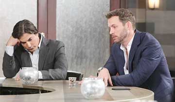 At the Kiriakis mansion, Brady set aside his glass of whiskey and stepped away from the bar after hearing Henderson greet Paul at the front door. Brady tried to act casual when Paul joined him in the living room a few seconds later, but Paul noticed the poured drink while looking for a place to toss his keys. "Grandfather must've left that out from last night," Brady claimed with a shrug before segueing into a recap of the conversation he'd had with Victor about Xander. "You're telling me that your grandfather believes that Sonny is guilty?" Paul asked incredulously after Brady finished talking. Nodding, Brady added, "[And] I'm beginning to think so myself."