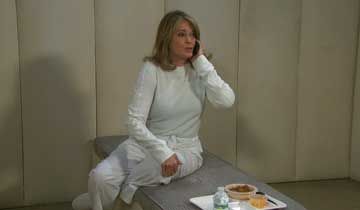 At Bayview, Marlena frantically tried to fill John in on what had happened to her, but a bad connection prevented him from being able to make out most of her end of their phone conversation. "Did you say 'help'? Doc, do you need help?" John asked worriedly. Before Marlena could say anything else, the orderly returned and snatched his cell phone out of her hand. "You've been a very bad girl, [and] now, 'Not Hattie,' you're gonna find out what happens to bad girls," the orderly warned before putting Marlena back in the straitjacket and sedating her.