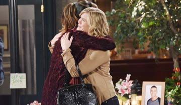 Sami started to leave, resisting the urge to hug Will first. As she opened the townhouse door, he reminded her that he still had her car keys. He tossed them to her then tentatively approached her and gave her a hug, prompting her to break down in his arms. "Bye, Mom," he whispered as he pulled away from her. Beaming, she thanked him then happily rushed off.