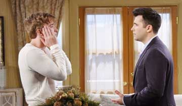 "Isn't that right, brother?" Brady continued as Paul entered the mansion. "After that bombshell that you spilled yesterday, don't you think Sonny's being a little bit delusional here?" Brady asked. Annoyed, Paul reminded Brady that things shared between brothers in confidence were supposed to remain confidential. As Brady scoffed dismissively, Sonny demanded to know if Paul really had kissed Will recently. "No. He kissed me," Paul clarified. Sonny refused to believe that, but Paul insisted, "It's true, Sonny -- and you almost walked in on it [when you came to see me at the Martin mansion]."