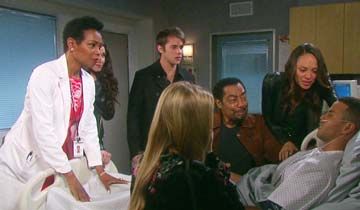 At the hospital, Valerie, Ciara, J.J., Abe, Claire, and Lani rejoiced when Theo woke from his coma. Valerie checked Theo's vitals, and he responded to her questions by blinking his eyes. When Theo was able to squeeze his father's hand, Abe cried out, "My boy! My boy is back." Valerie announced that she needed to clear the room to examine Theo. Holding back tears of joy, everyone shuffled out of the room.
