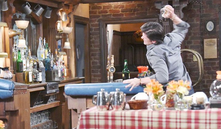 "I thought we were brothers again, but this whole time, you knew about it, and you said nothing. You ruined the chance that Nicole and I could have happiness. And you said nothing," Eric stammered. Brady apologized. Eric told Brady he was pathetic. "You and I are no longer brothers," Eric growled. Eric left and walked over to the Brady Pub. Emotional, Eric poured a drink. Eric sniffed the glass of liquor and fought back tears. With a sigh, Eric clutched the glass and threw it against the wall.