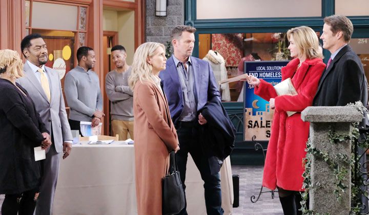 Brady soon approached and presented Abe with a donation from Titan. A short time later, Eve and Jack approached, also wanting to make a donation. Eve was quick to reveal, however, that Jack had a very special announcement to make, too. "You shouldn't let this guy hijack your event," Sheila whispered to Abe as Jack officially joined the mayoral race. "I just said I welcome an open discourse, so I have to let Jack speak," Abe explained in an equally hushed tone. "Way to hand over the keys to the mayor's office..." Sheila grumbled, but Abe was more concerned about the fact that Jack was taking attention away from a worthy cause.