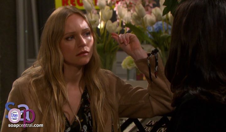 In the square, Chloe and Sarah ran into one another. "I am wedding dress shopping," Sarah announced. Chloe advised Sarah to run away from Xander. "I take it you're not a Xander fan," Sarah said. Chloe told Sarah about her kidnapping in Mexico. "[Xander] just left me there, and I ended up having to stab the guy, and as awful as he was, his death is still on my conscience. All of that could have been prevented if Xander would have just stepped up and done the right thing," Chloe said. Sarah admitted that she had not heard the story.
