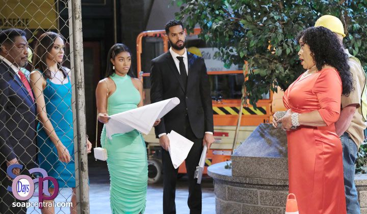 The foreman of the construction crew helpfully interjected that "Price Town" wasn't really any worse than "Q-Mart" as a name for a big-box store. "Excuse me?" Abe sputtered. "Don't listen to him -- he's just a demolition man; he doesn't know what he's talking about," Paulina argued. "I think he knows exactly what he's talking about," Chanel countered before telling Lani, Eli, and Abe about having recently found blueprints in the Price condominium that definitely could have been blueprints for a big-box store but had been marked -- incorrectly, according to Paulina -- as blueprints for the Horton Town Square project. "Since when have you become an expert in the development business?" Paulina snapped at Chanel -- and as Eli incredulously reacted to Paulina's shameless attempt to discredit Chanel, Lani and Abe suddenly realized the true reason for the inconsistent stories about Paulina's love life.
