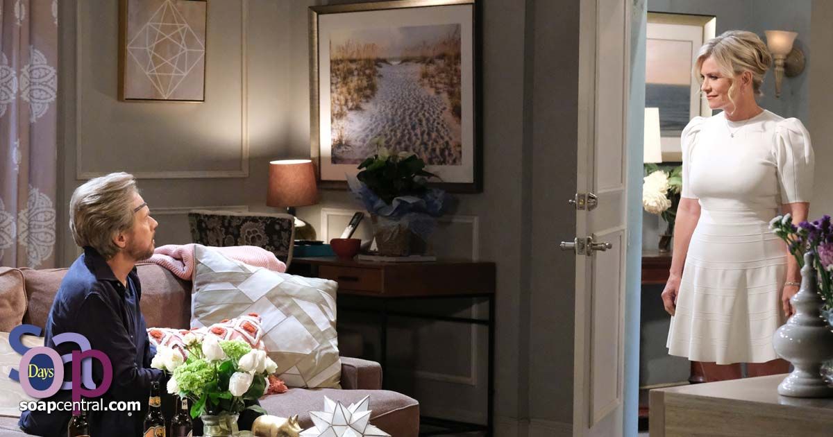 "[Eric] invited me to join him [in a drink]," Brady said. Nicole gasped. "I declined, of course, but I'm worried about him. He's not in a good place," Brady said. "He did just lose his mom," Nicole said. Brady argued that Eric also missed Nicole. Nicole disagreed. "[Eric's] moved on. He prefers hanging out with Sloan Petersen," Nicole said. Brady asked Nicole if she had moved on with E.J. Nicole told Brady that she believed he would get back together with Chloe, and she walked out.