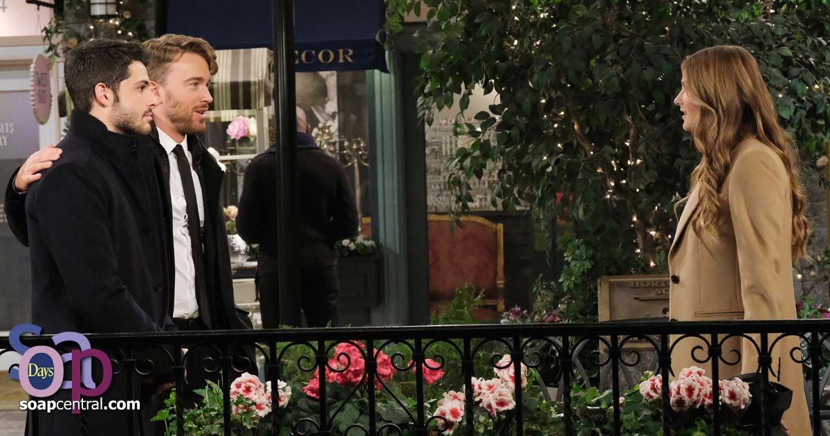 Will and Sonny discussed the three funeral services while they were passing through the town square. "In one day, three -- both my grandmothers and my --" Will stressed, prompting Sonny to interrupt with a hug.