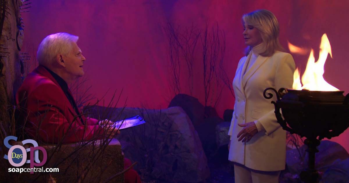 In the shape of Doug Williams, the devil sat in his throne room and made Marlena an offer. "If I agree to spend all of eternity by your side in hell, then you agree to let Kate and Kayla out of their contracts?" Marlena asked. "You will be saving their immortal souls," devil Doug said. Devil Doug asked Marlena if they had a deal. Marlena argued that there had to be another option. With a shrug, the devil said that either Marlena went to hell, or all three women would go there.