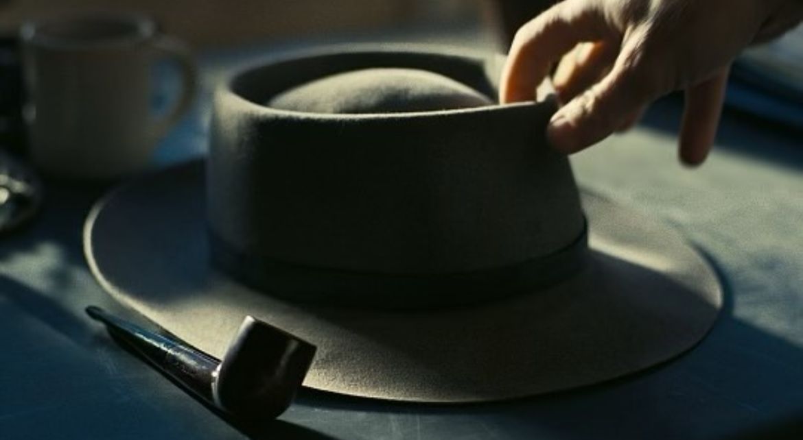 The hat is historically correct; it is said that Oppenheimer loved the hat, and it was a part of his mysterious persona. He wore it everywhere, including congressional hearings, his lab meetings, work, and likely at home as well.