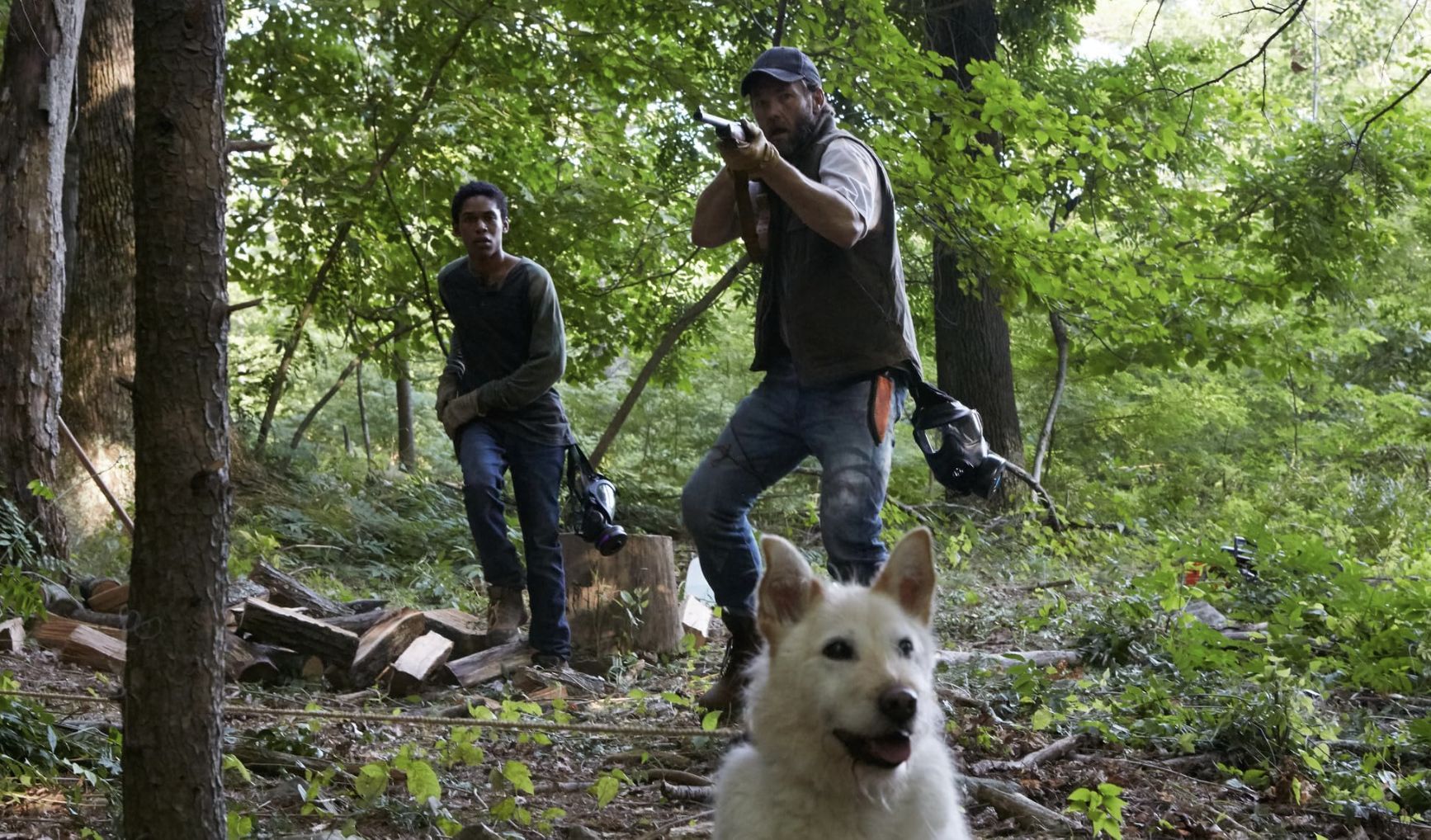 The world outside is already broken when the film begins. A family lives in a boarded-up house deep in the woods. They follow strict rules to keep a virus from getting in. One day, a man arrives with his wife and child, asking for shelter.