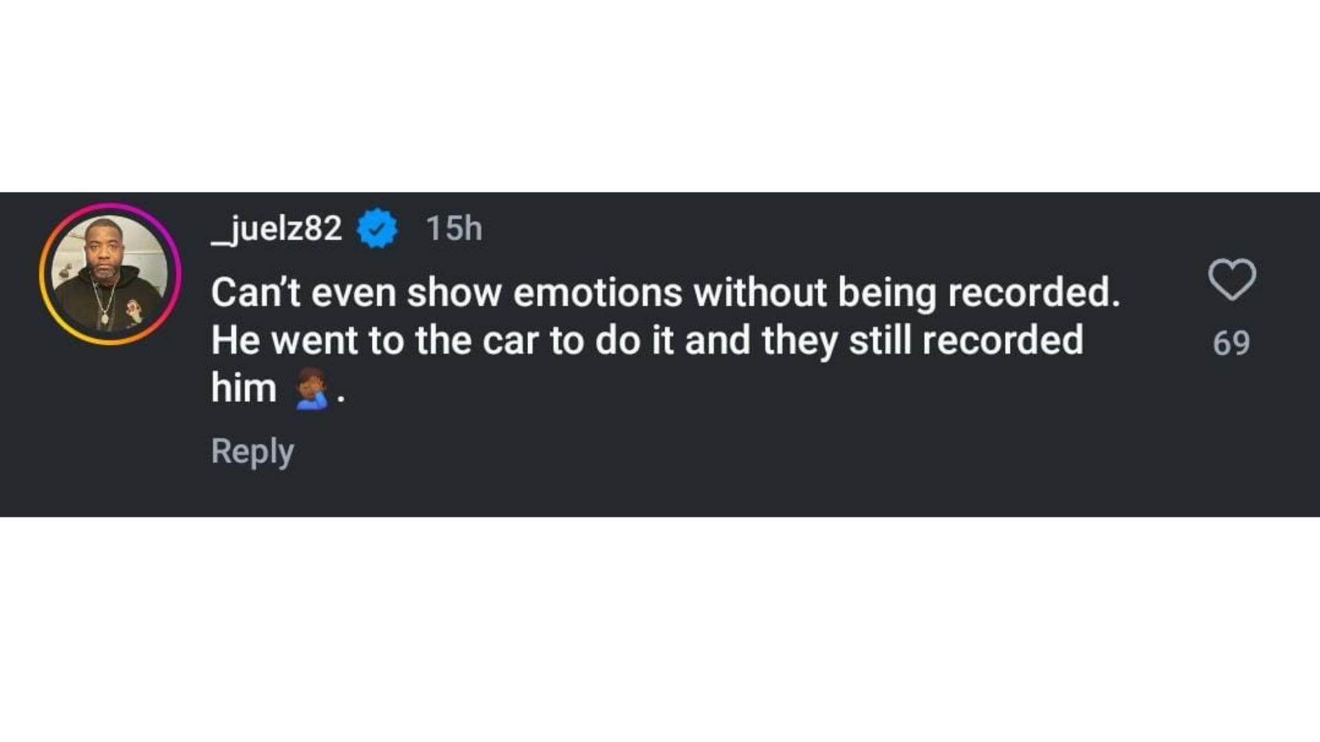 "Can't even show emotions without being recorded. He went to the car to do it and they still recorded him🤦🏽♂️."