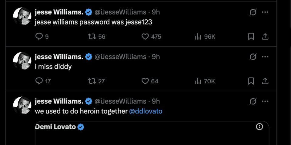 On June 8, 2025, Jesse Williams joined the list of celebrities whose social media account was hacked, with a string of unpleasant, strange, and obscene tweets being posted from his X account . Rapper Drake and troubled music mogul Sean "Diddy" Combs were among the well-known individuals mentioned in the messages, which, in addition to the offensive language, attracted a lot of attention.