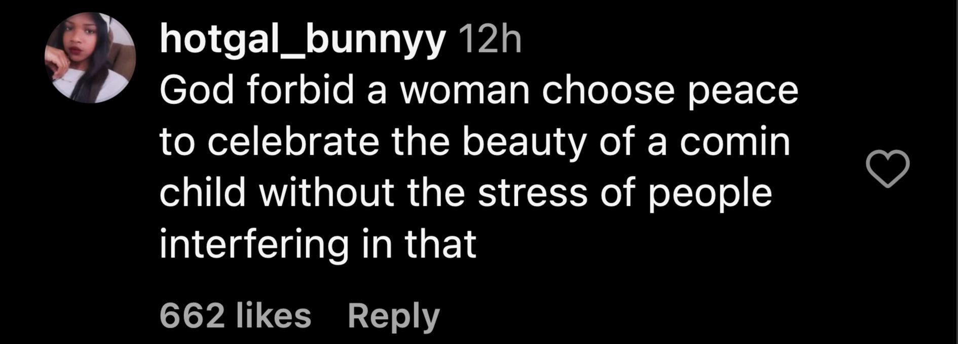 "God forbid a woman choose peace to celebrate the beauty of a comin child without the stress of people interfering in that"