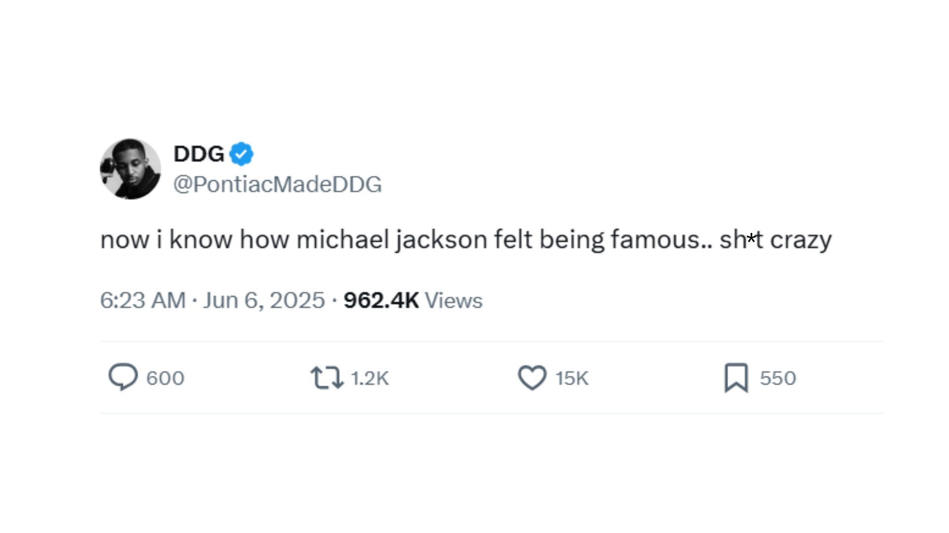 YouTuber and rapper Darryl Dwayne Granberry Jr., aka DDG, has compared himself to Michael Jackson in his latest X post. On June 6, 2025, he took to the social media platform and wrote: