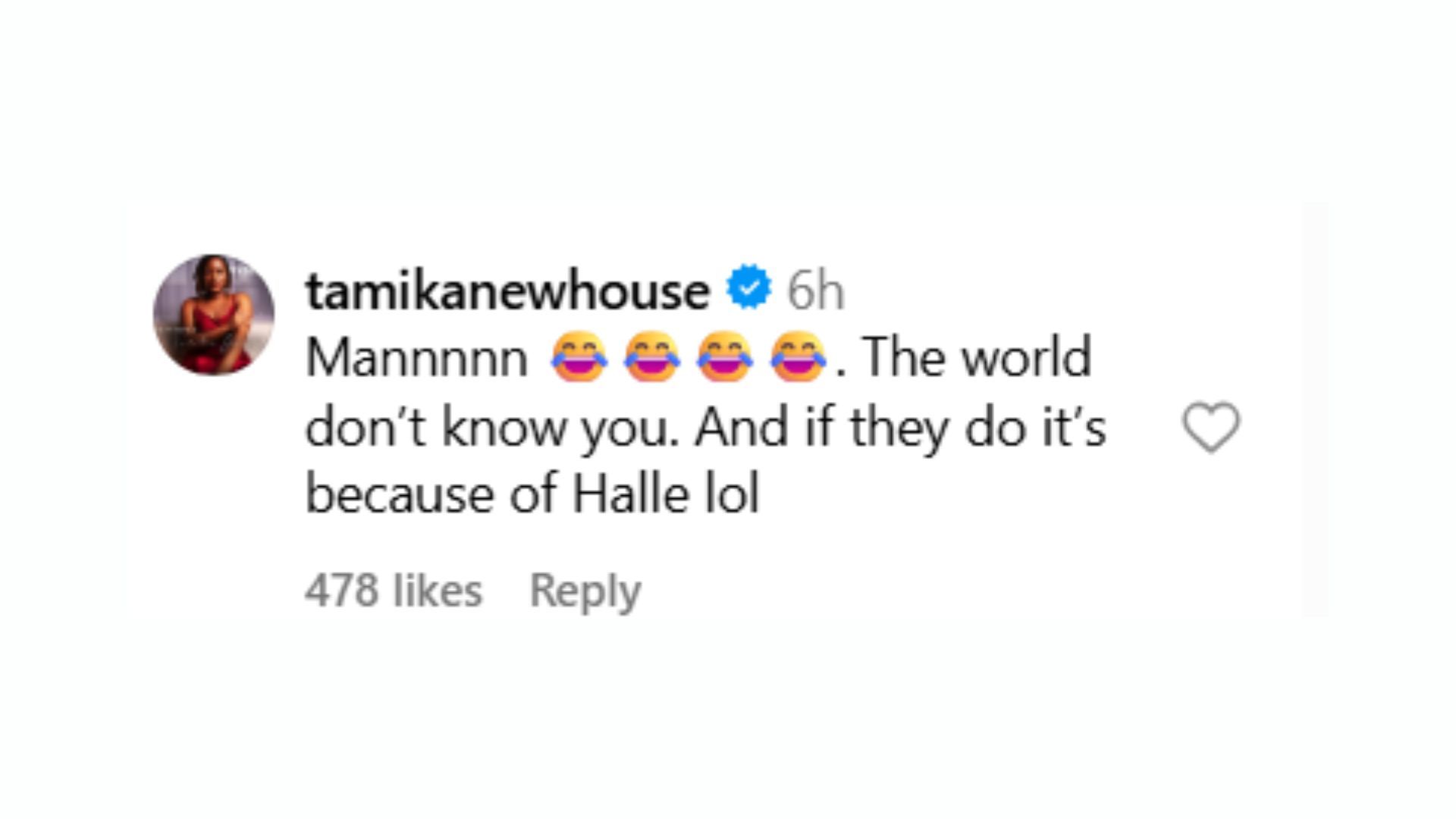 “Mannnnn. The world don’t know you. And if they do it’s because of Halle lol.”