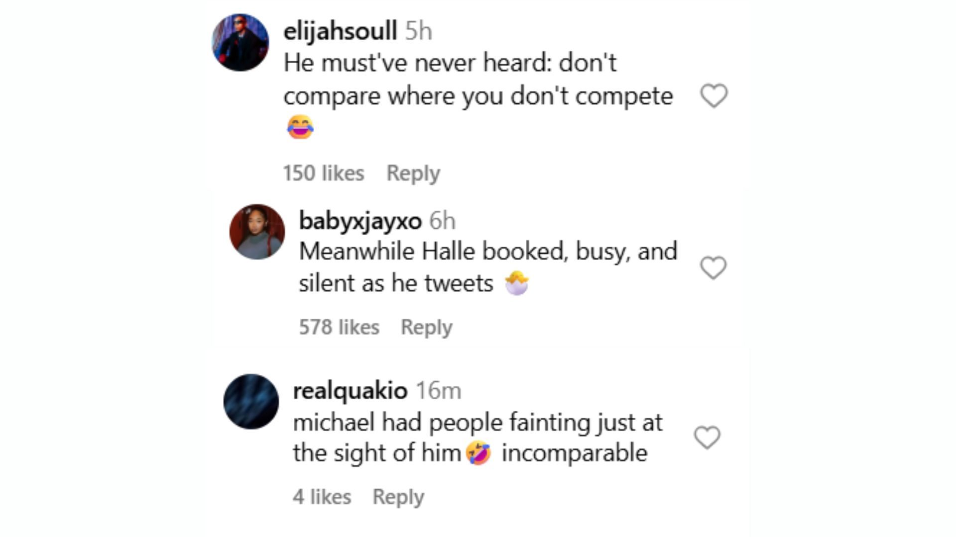 Social media users had mixed reactions to the statement. While some criticized him for comparing himself to the King of Pop, others brought up his ongoing fallout with Halle Bailey. One Instagram user (@brownskinmiss) wrote: