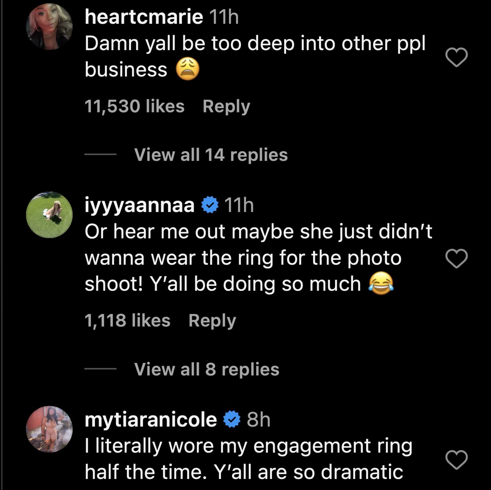 "I literally wore my engagement ring half the time. Y’all are so dramatic," someone else said.