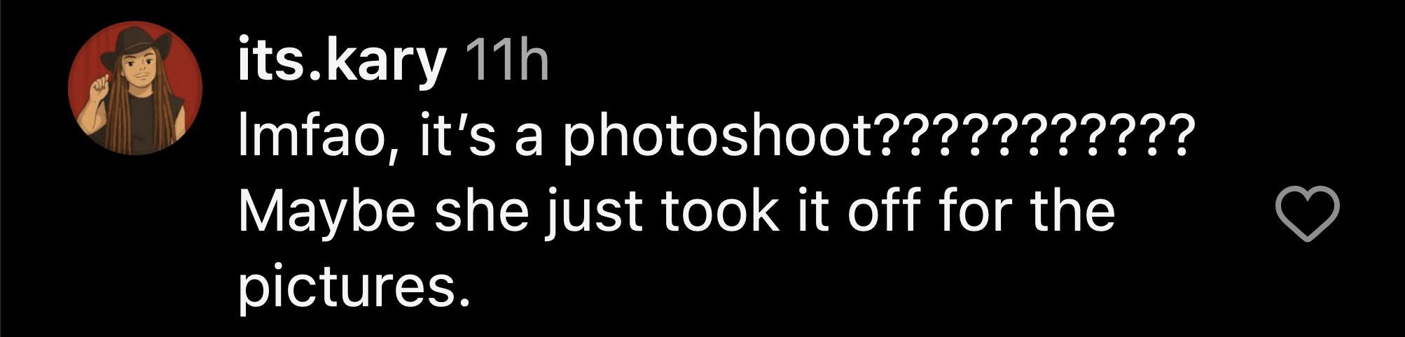 "lmfao, it’s a photoshoot??????????? Maybe she just took it off for the pictures."