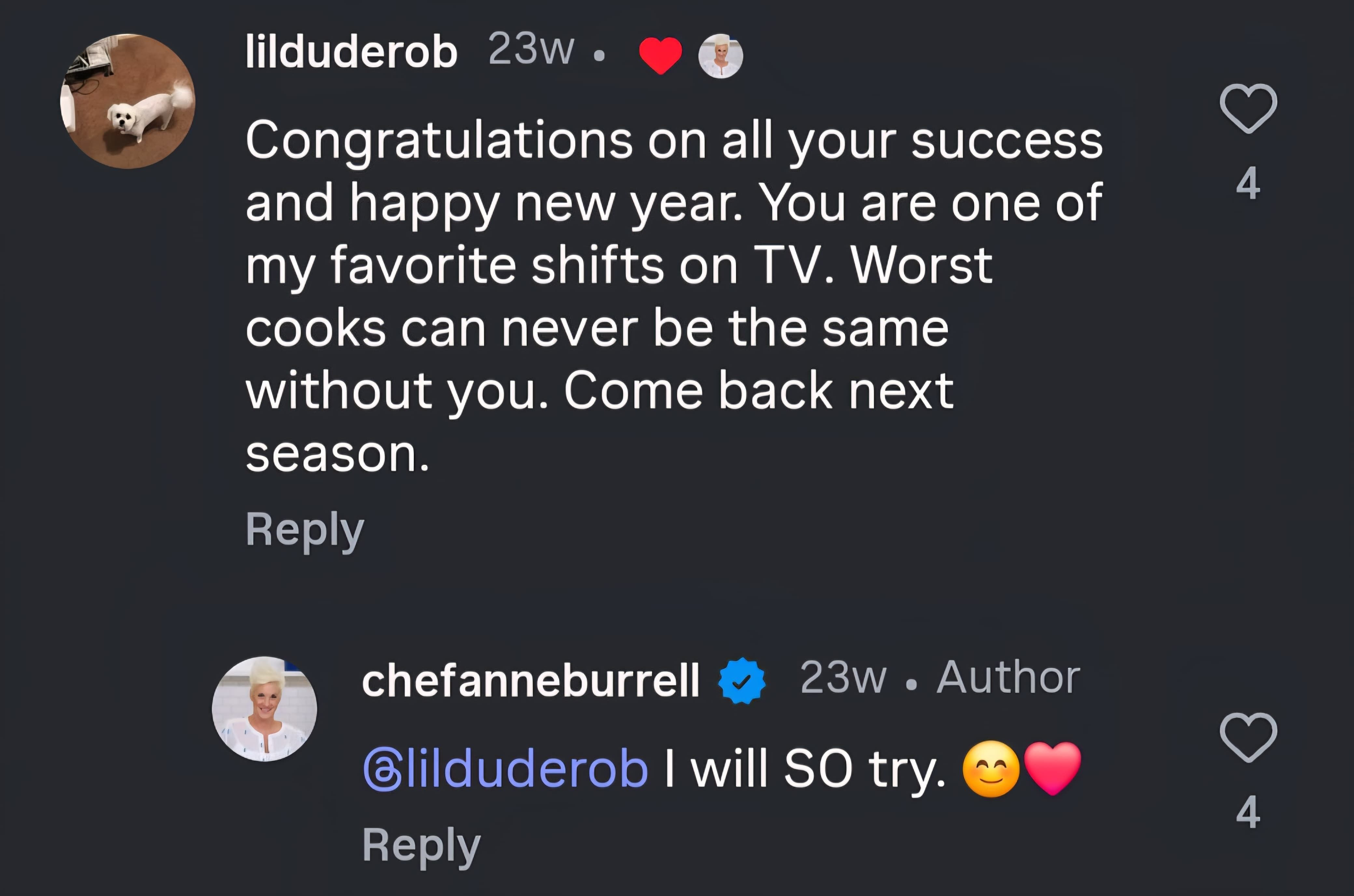However, she appeared optimistic about returning to the show, telling one fan, “I will SO try,” when questioned about her potential return in the next season.