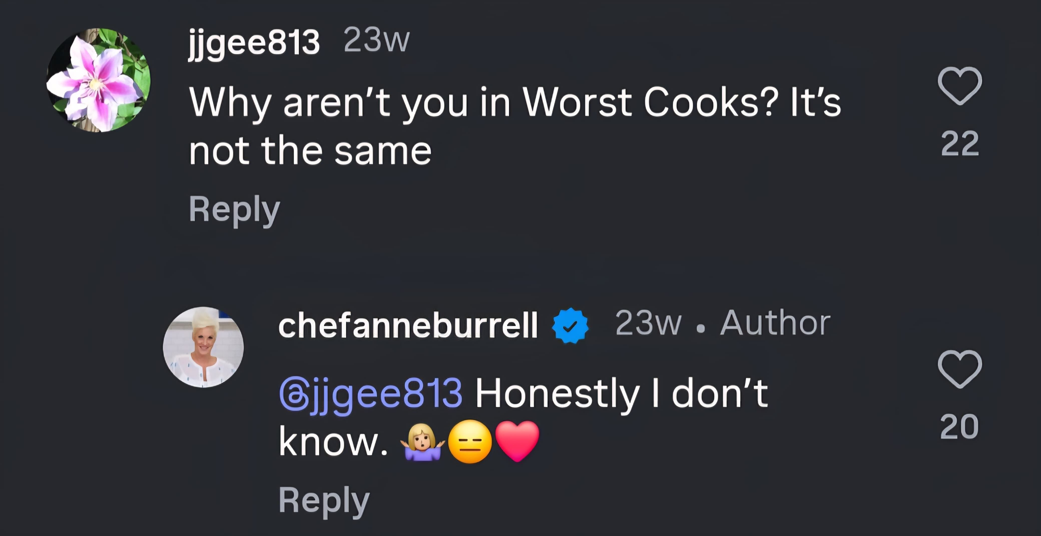 Anne Burrell's response sparked further speculation regarding her professional situation, as she replied to other comments suggesting that she was uncertain why she was not on the show.