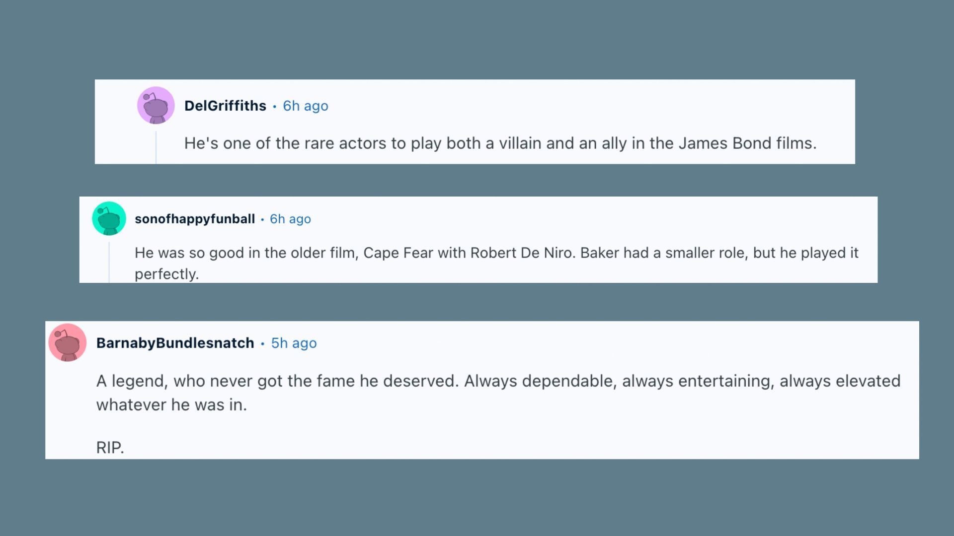 "Woke up to the sad news of tough guy movie legend #JoeDonBaker's passing last week. If there was ever an actor who embodied that realistic working-class American badass archetype, Baker was the one. Rest easy, and go 'head on, good sir!"