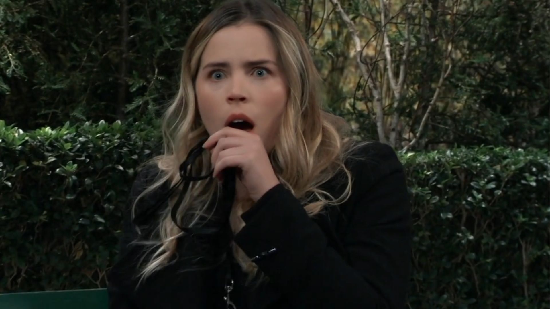 Sasha was determined to get a look at Elaine's notebook, so when Elaine handed her Mavis' leash so she could take a call from Marty (Michael E. Knight), Sasha let the dog off the leash so Elaine would chase after her. As Sasha thumbed through Elaine's notebook, she was horrified when she heard a sudden crash.