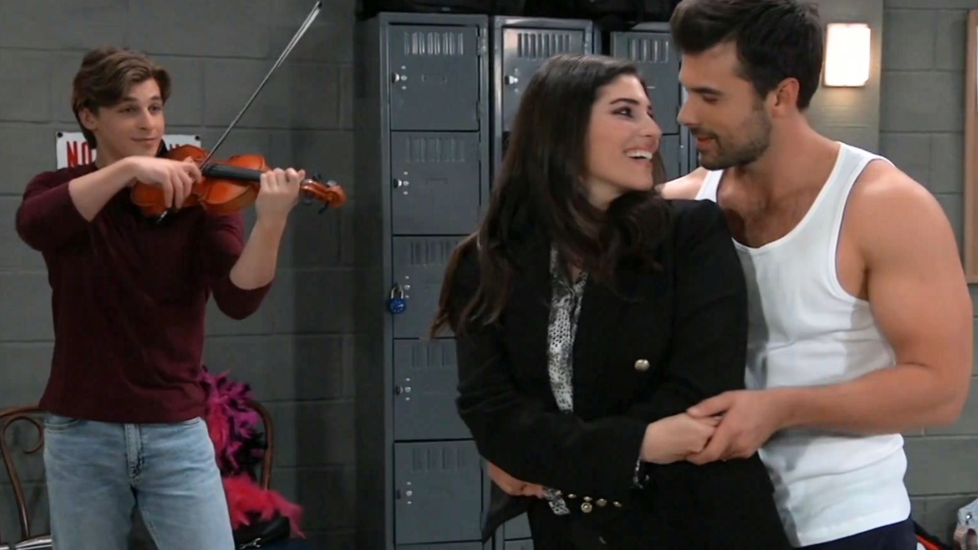 Back at the rehearsal space, Tracy's great-grandson played the violin while his mother and her husband danced the Tango just for the heck of it. As for Lulu, she dragged Carly back to her place to tell her that she needed to find Dante's son.