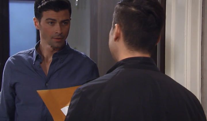 Griffin was finishing getting dressed when Ava entered. They shared a kiss, and Ava offered to get him some coffee. When she was gone, there was a knock on the door. Griffin answered it to a messenger, who had an envelope with Griffin's important lab results. Ava returned, and Griffin told a curious Ava what the envelope was. She realized that the results were probably confidential, so she gave him some privacy. He opened the envelope and read that there was a "genetic match" between the two patients. "Peter August is Cesar Faison's son," Griffin said.