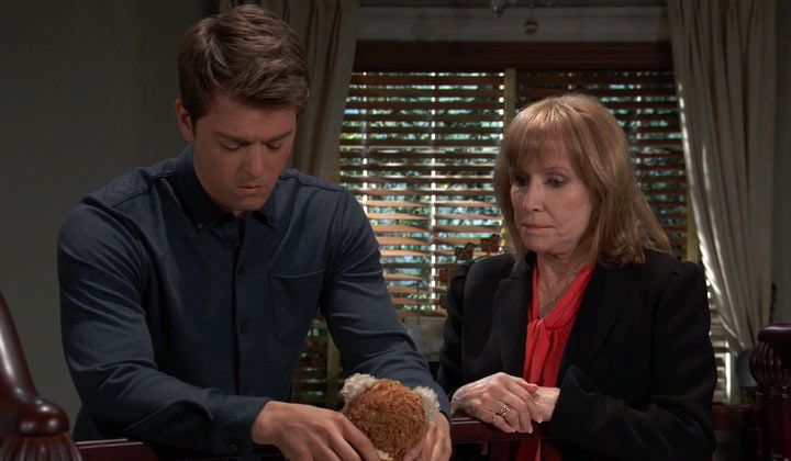 Monica found Michael in the Quartermaine nursery. He was leaning over the empty crib and holding a teddy bear. He stated that he wasn't okay and wouldn't be for a long time, although he would get through it like Monica had. Monica advised him that it would seem like forever "until it doesn't."