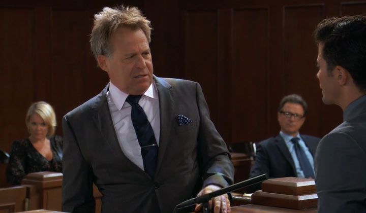 Ava remembered all of the intimate moments she'd witnessed between Kiki and Griffin and went back into the courtroom. She glared at Griffin and Kiki from the back and went to sit behind Scott. Alexis finished her questioning, and Scott announced that he had no questions for Griffin. Bensch disputed that, so Scott quietly assured him that it was part of Scott's strategy. "There's one question that's gone unanswered," Ava told Scott. "Ask the question," she added. Scott reluctantly got up and asked Griffin if he and Kiki had ever had sex.