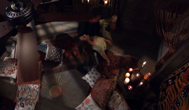 As Sam held Jason's hand, she told Shiloh that she missed Jason and wanted to be with him. He asked where she was and promised to meet her there. "And that's how it's done," Sam gloated to Jason when she hung up. He asked her to keep Shiloh busy for at least half an hour. "Go get my sister," she told him, and he promised not to leave the house without Kristina.