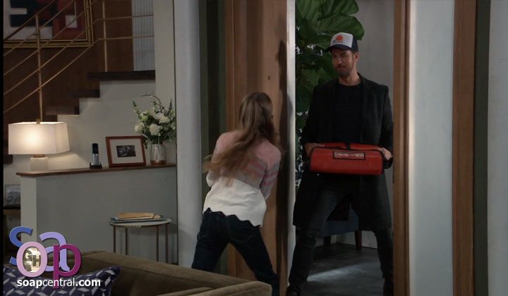 Charlotte opened the door and saw Peter with a pizza in hand. She attempted to close the door, but Peter overpowered her. When Peter stepped into the apartment, a pizza delivery person was seen unconscious on the floor.