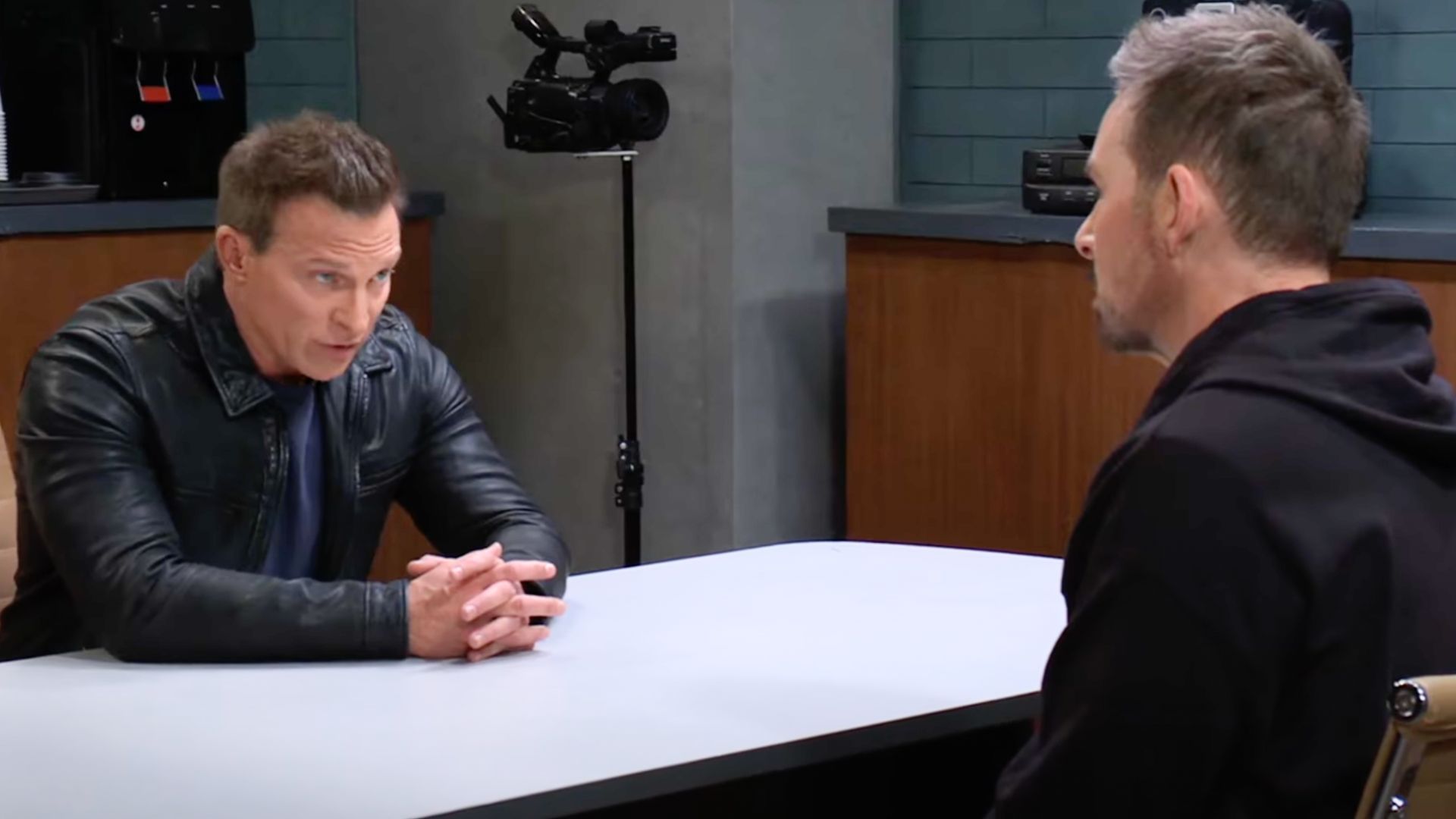 Jason (Steve Burton) blames Jack too and thinks Valentin can help him out so he visits him in the interrogation room but makes him take the other chair because Jason needs to feel comfortable on his side of the table.