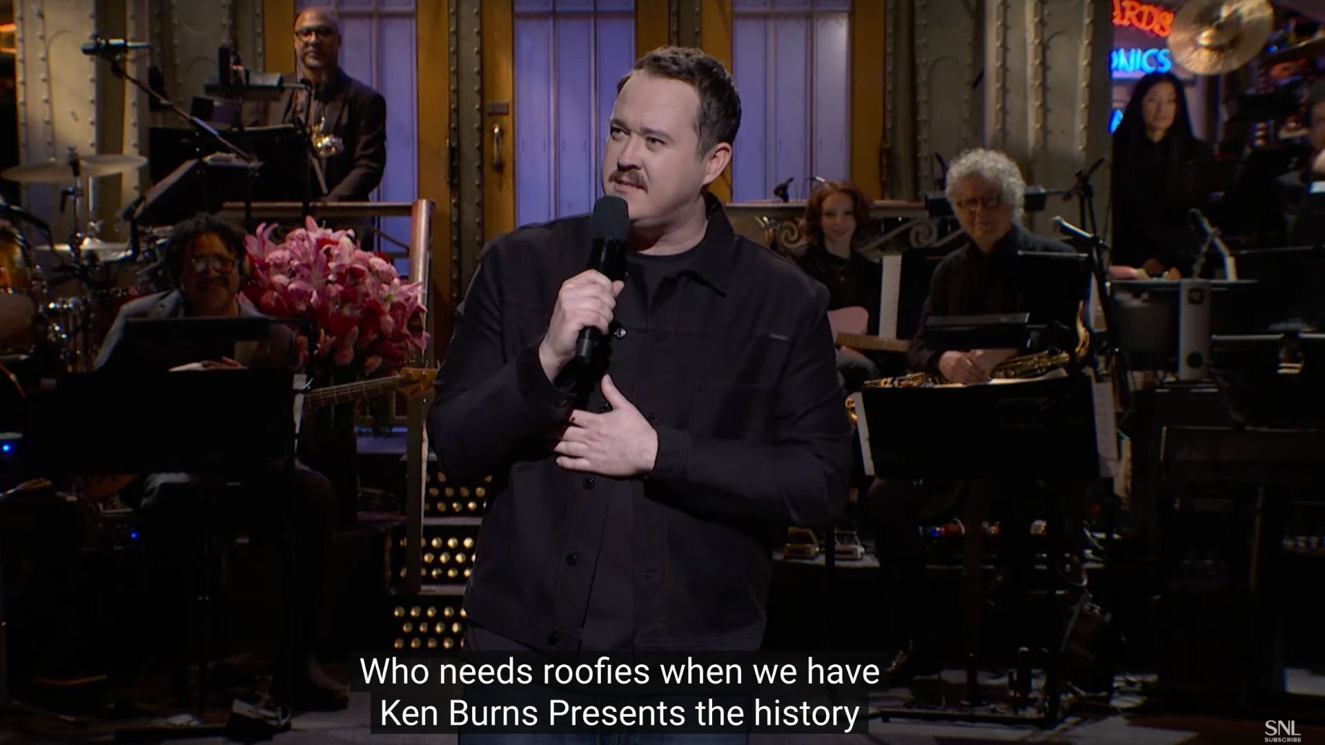 “You know, they’re yapping a little, you go, ‘How about some Ken Burns?’ That’s a little Cosby tip for you, actually. Who needs roofies?”
