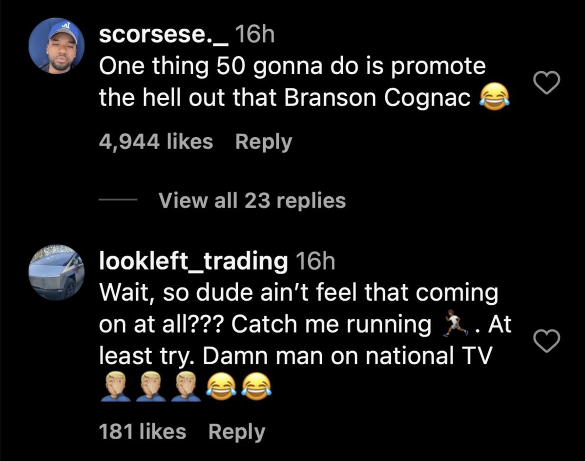 "One thing 50 gonna do is promote the hell out that Branson Cognac 😂," one user hilariously noted on IG.