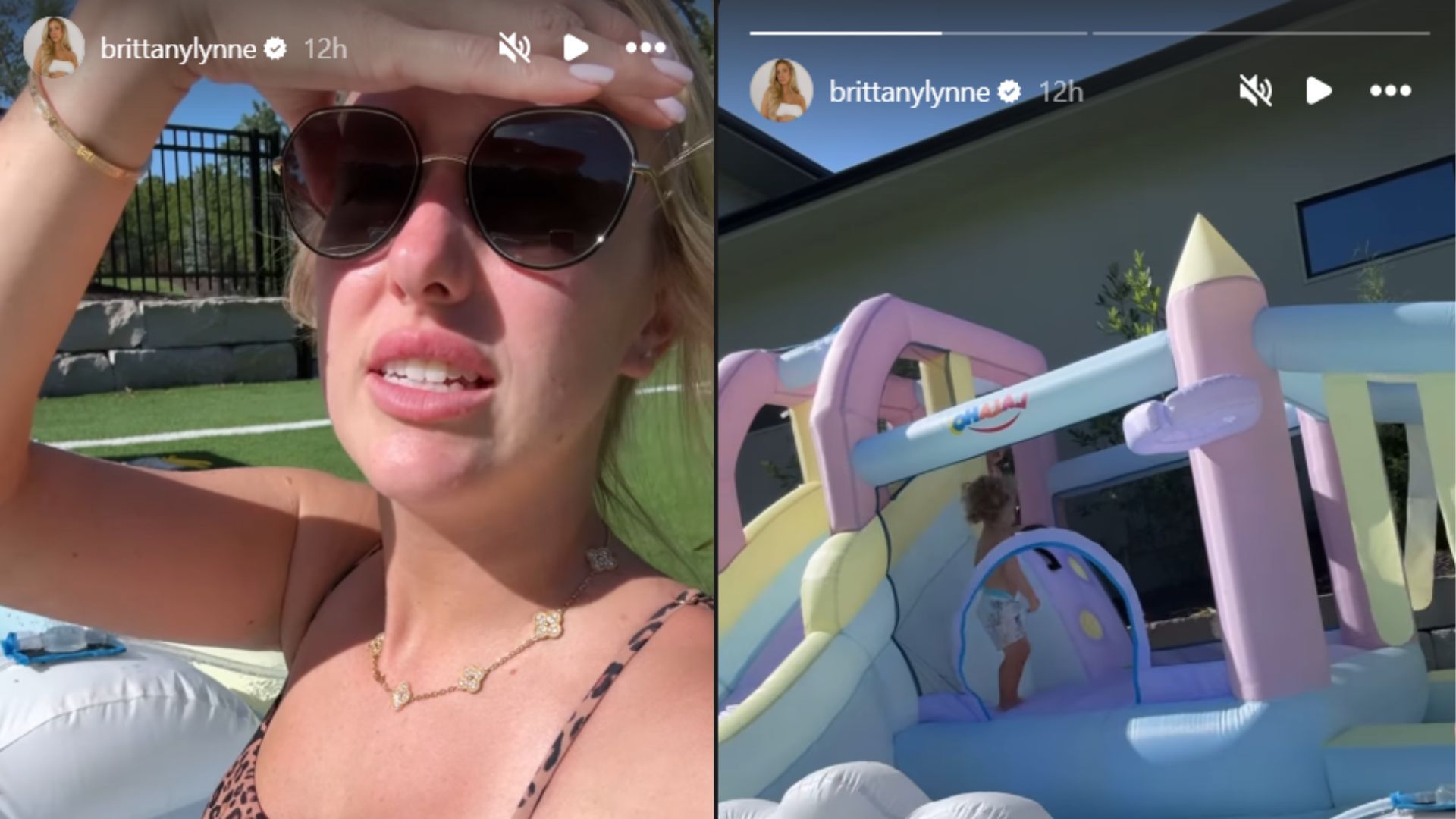 Brittany Mahomes jokes that she might have gotten the inflatable to sunbathe, not just for the kids to play. "Did I get this so I can tan while the kids play? We’ll never know," she says in the video, covering her eyes from the sun. The post shows a typical situation where parents juggle their duties with personal time during family outings.