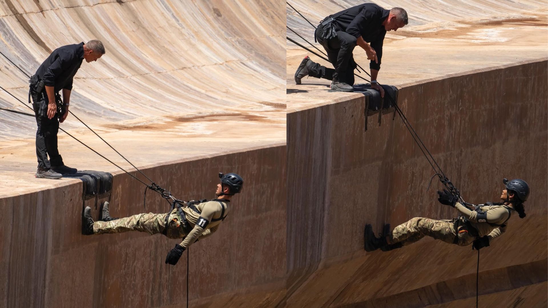 "The recruits must focus as they plummet down a 330-foot drop, then at the bottom, they must recite a set of coordinates which they were asked to memorize prior to the drop; the recruits are challenged to navigate through tight tunnels and trenches."