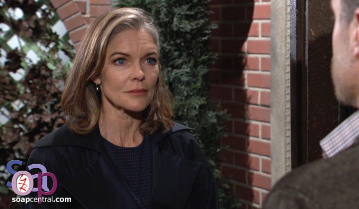 Upstairs in her suite at the Grand Phoenix, Diane paced nervously as she relived her tense encounter with Jack when he'd discovered she'd returned to town unannounced. Jack had reminded Diane that they'd agreed she should stay away until after he'd broken the startling news to Kyle. Diane had claimed she feared Kyle might want nothing to do with her, so she'd wanted to be close in hopes of at least seeing him. Jack had told Diane that it could still be Kyle's choice to leave without seeing her. Diane and Jack had rehashed her declaration about having changed, which Jack had insisted was impossible to believe. Jack had expressed his fear that Diane would break Kyle's heart again. Diane seemed even more anxious after remembering that Jack had told her he hoped Kyle wouldn't agree to meet with her. Unable to exert self-control, Diane donned her wide-brimmed hat and sunglasses and exited her room.