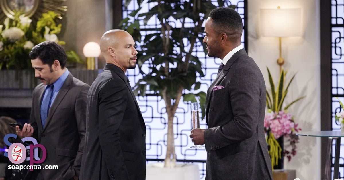 Chance answered a call about a break in one of Rey's cases. Chance hesitated to leave, but Abby recognized how important his job was and encouraged him to see it through. Jill was sure everyone would understand that protecting their city took precedence, and Chance promised to try to be back before the party was over. After Chance headed out, Jill spotted a CEO of a former Chancellor rival, and she flitted over to remind him of what a powerful company Chancellor-Winters would be.